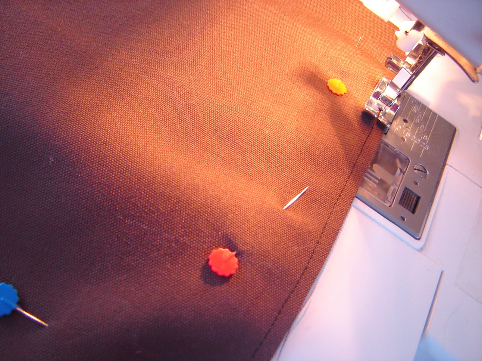 Fold RIGHT SIDES OF FABRIC together along the long edge. Pin one long edge and one short edge in place. Use pretty pins because you'll blog about this later.