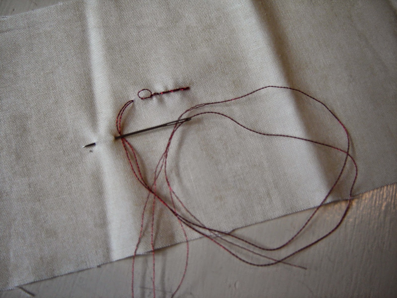 SEW SLOWLY! In this picture, you see what often happens as you embroider. The strands separate. Now you can try different methods of knotting to alleviate this, but I find that just going slowly, and taking the time to pull individual strands through when necessary, is the way to go. It's just a matter of being patient and knowing that the end result will be worth it!