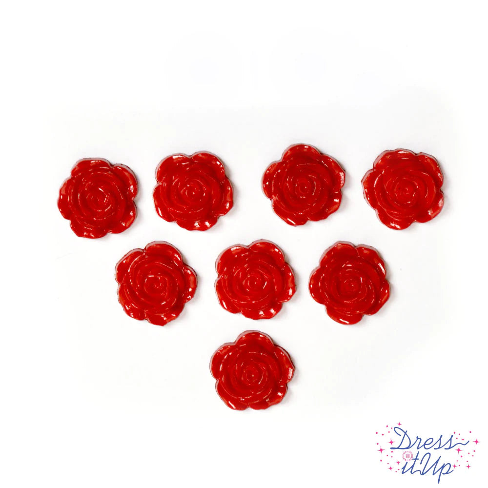 Eight beautifully red, shank-backed, rose buttons. Approximately 1/2".