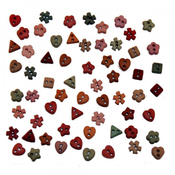 Tiny, assorted shaped, sew-through buttons in natural colors. Approximately 1/4".