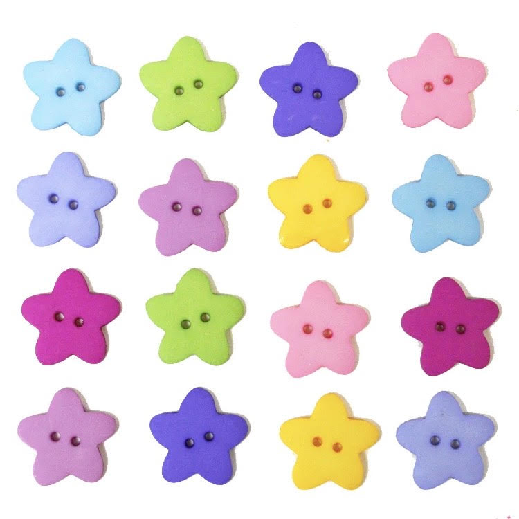 Fun, brightly colored star buttons. 3/4", approximately 15 per bag".
