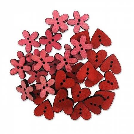 Wooden buttons in a combination of pink flowers and red hearts. Approximately 35 per package, 3/4" each.