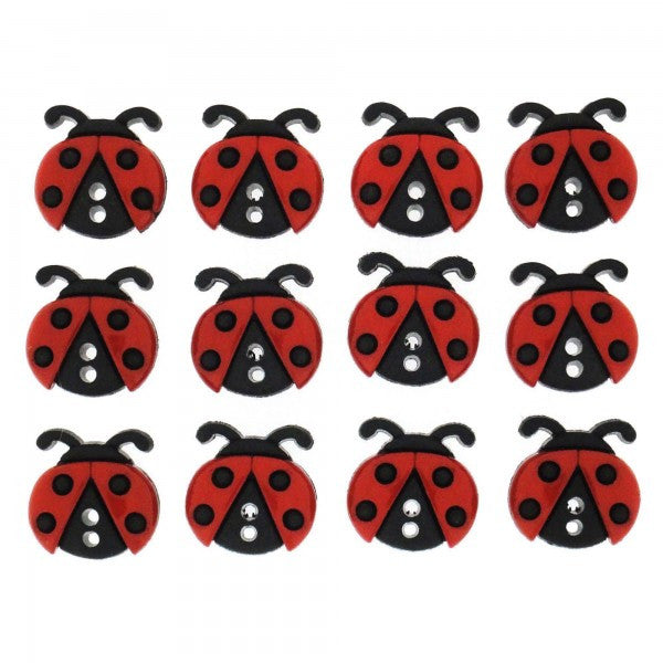 Red and black sew-through ladybug buttons, 5/8" across. It's a ladybug picnic!