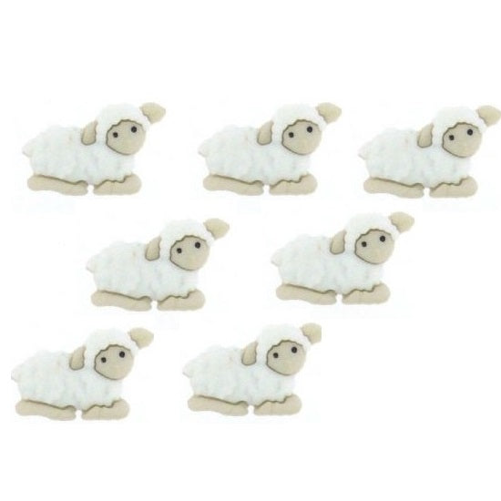 Itty bitty sheep buttons. 1/2" tall x 5/8" long. Six in a package.