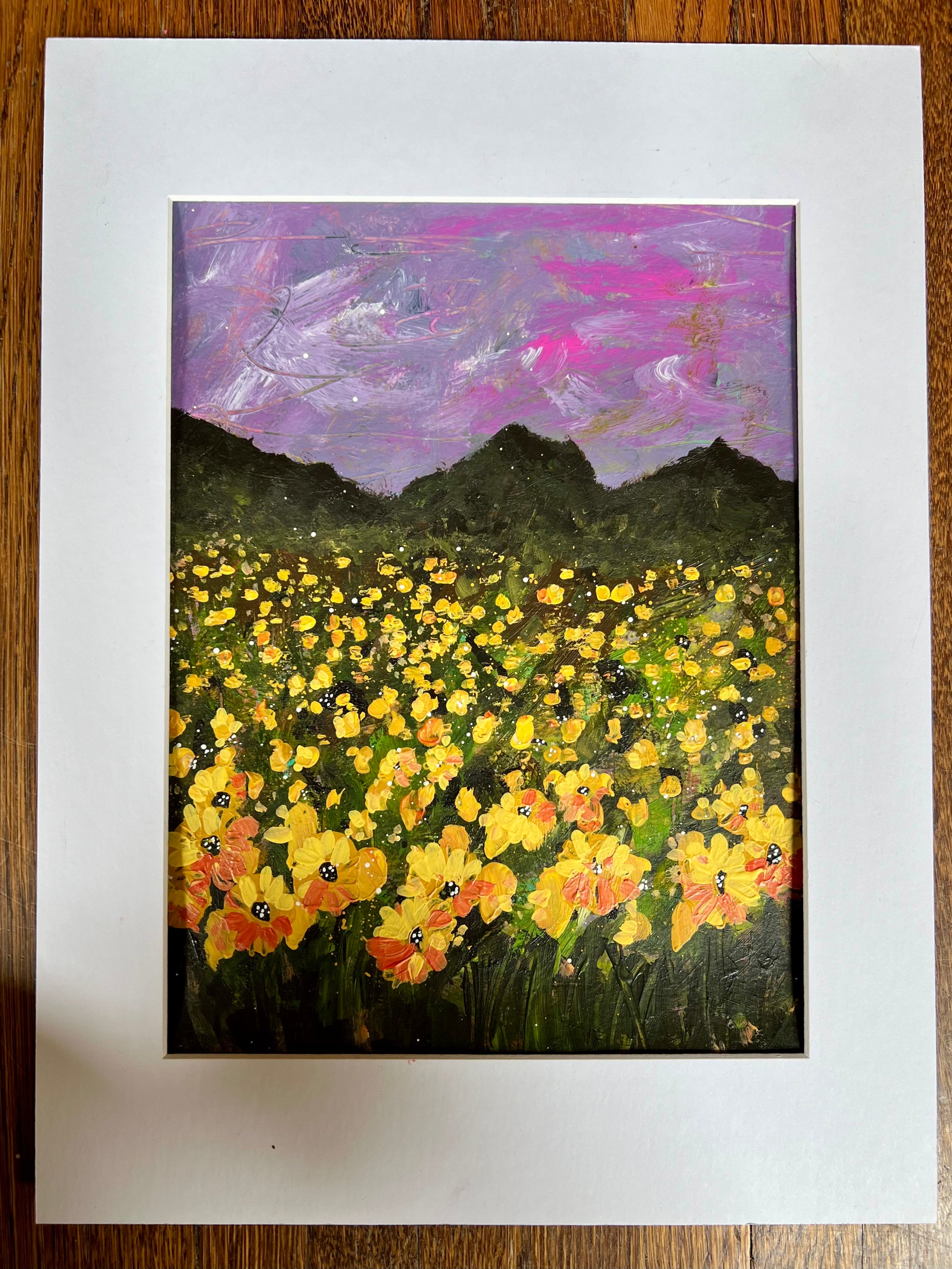 Matted painting includes a white mat that finishes this work at 12"x16". This is a standard-ish frame size so that you can easily frame this piece upon receipt. PRICES INCLUDE DOMESTIC SHIPPING. International shipping will be calculated upon request.