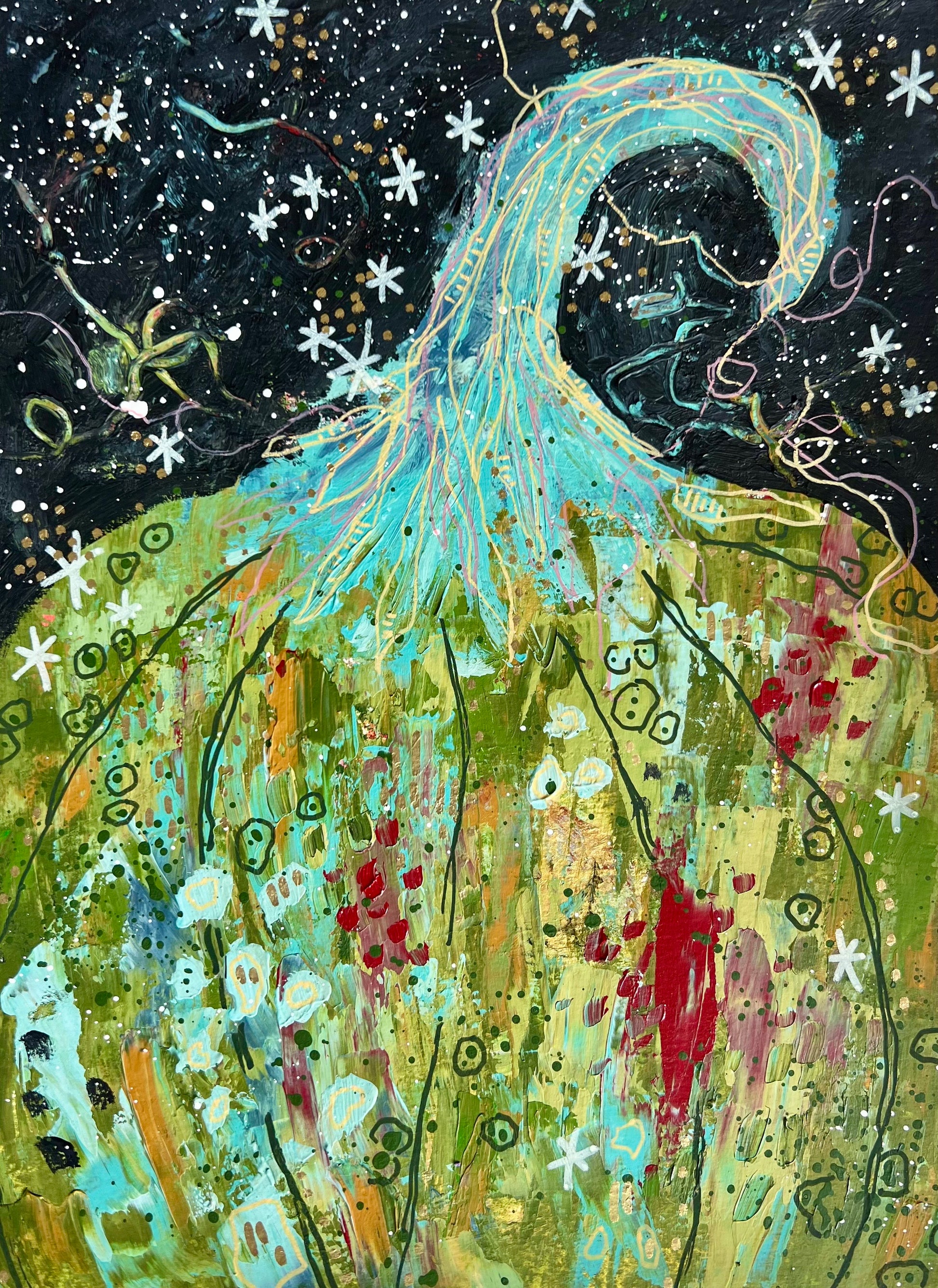 9"x12" acrylic paint and paint pen on high quality, 140 lb, watercolor paper.