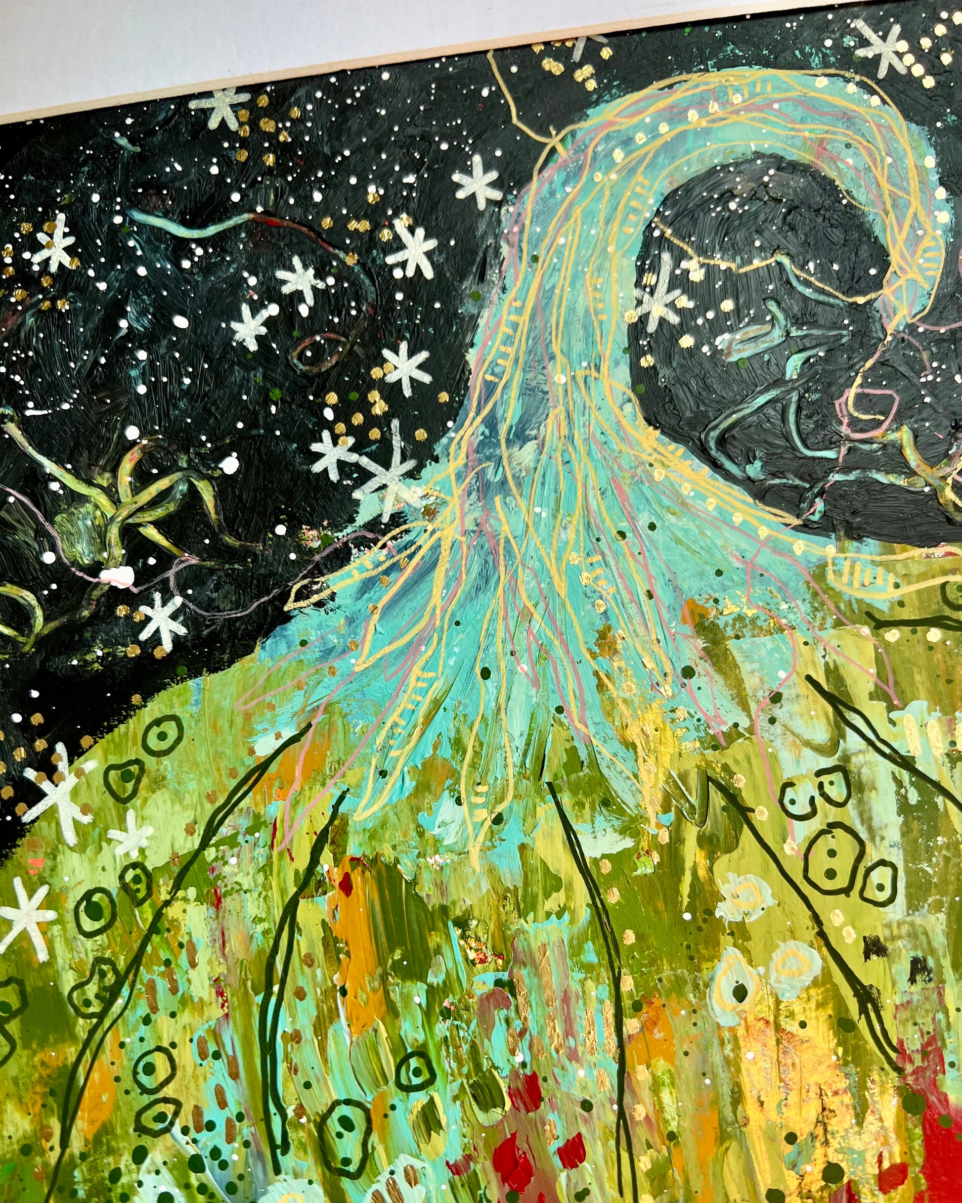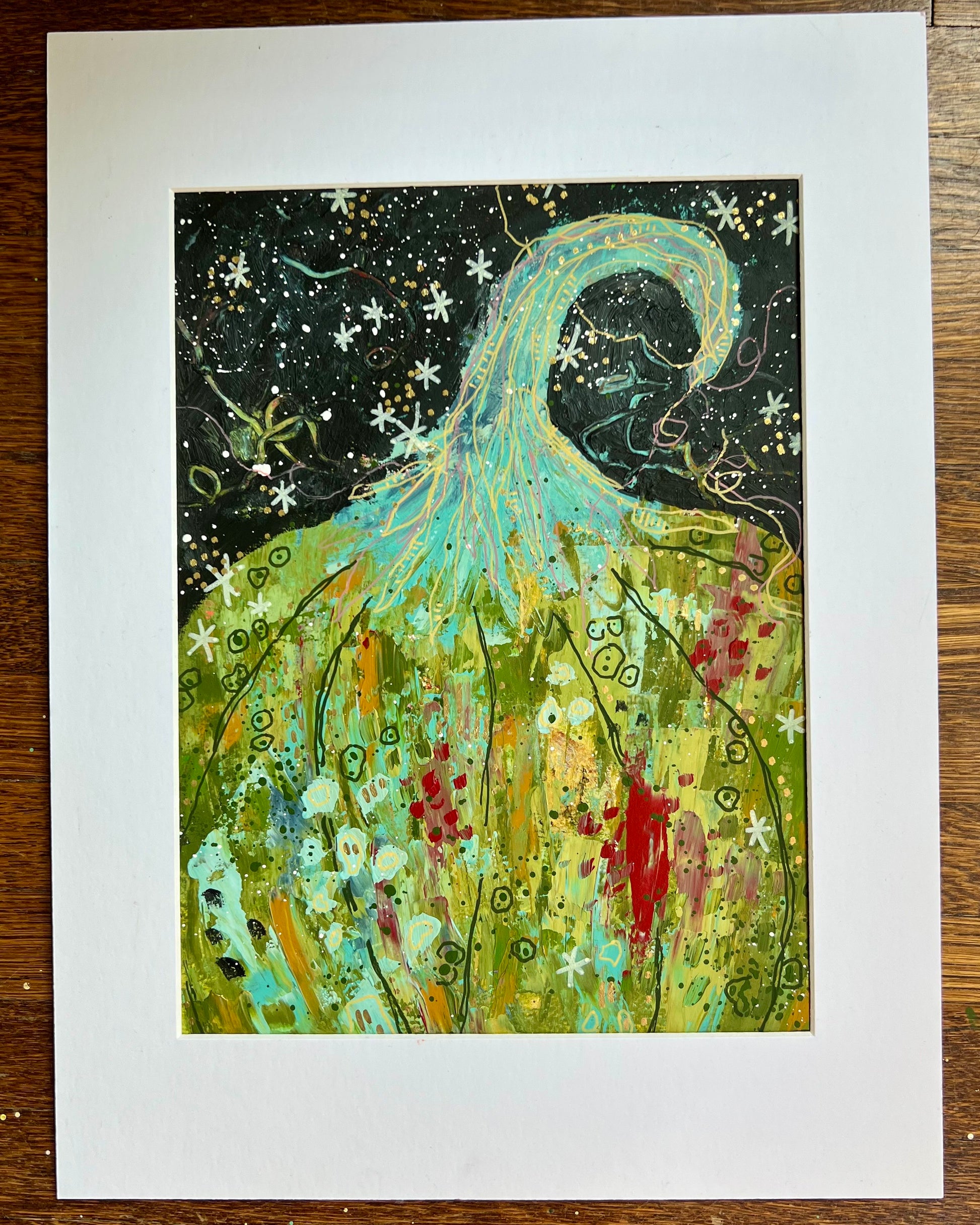 Matted painting includes a white mat that finishes this work at 12"x16". This is a standard-ish frame size so that you can easily frame this piece upon receipt. PRICES INCLUDE DOMESTIC SHIPPING. International shipping will be calculated upon request.