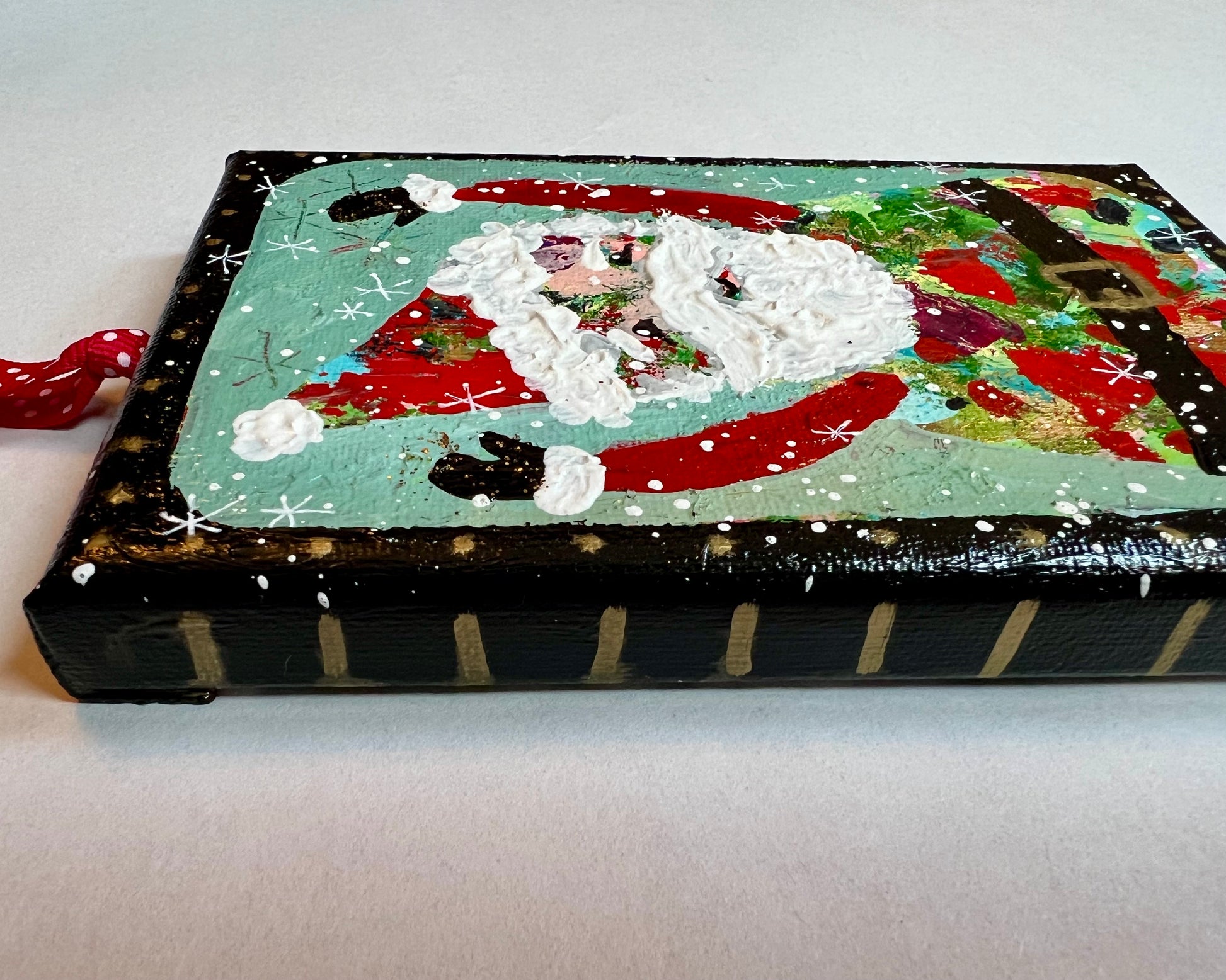 Hey Santa! These hand painted Saint Nicks are so happy that December is here, and Christmas is coming. Colorful, happy, full of life, sparkle, and snowflakes.