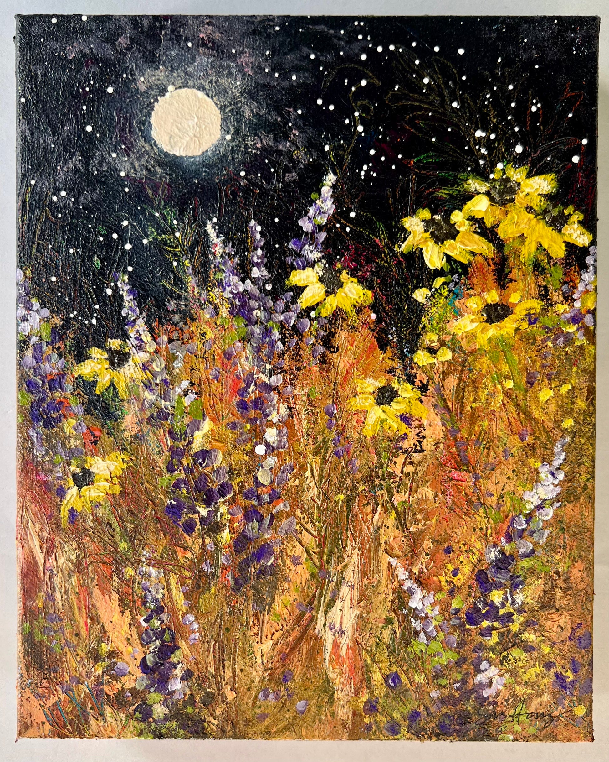 8”x10”x1½” acrylic paint and chalk pastel on gallery wrapped, heavy duty canvas. Finished with protective varnish. Edges are painted, and the back is outfitted with a sawtooth hanger, making this piece ready to hang.