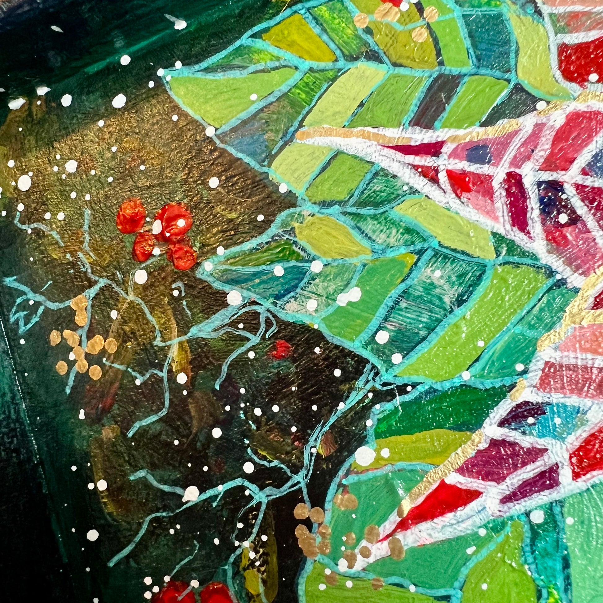 Each is an original- acrylic and gold penwork on a 5"x7"x3/4" deep kiln-dried New Zealand pine. They're lightweight, high quality, sealed to prevent warping, and finished with a glossy varnish. Sawtooth hanger on the back.