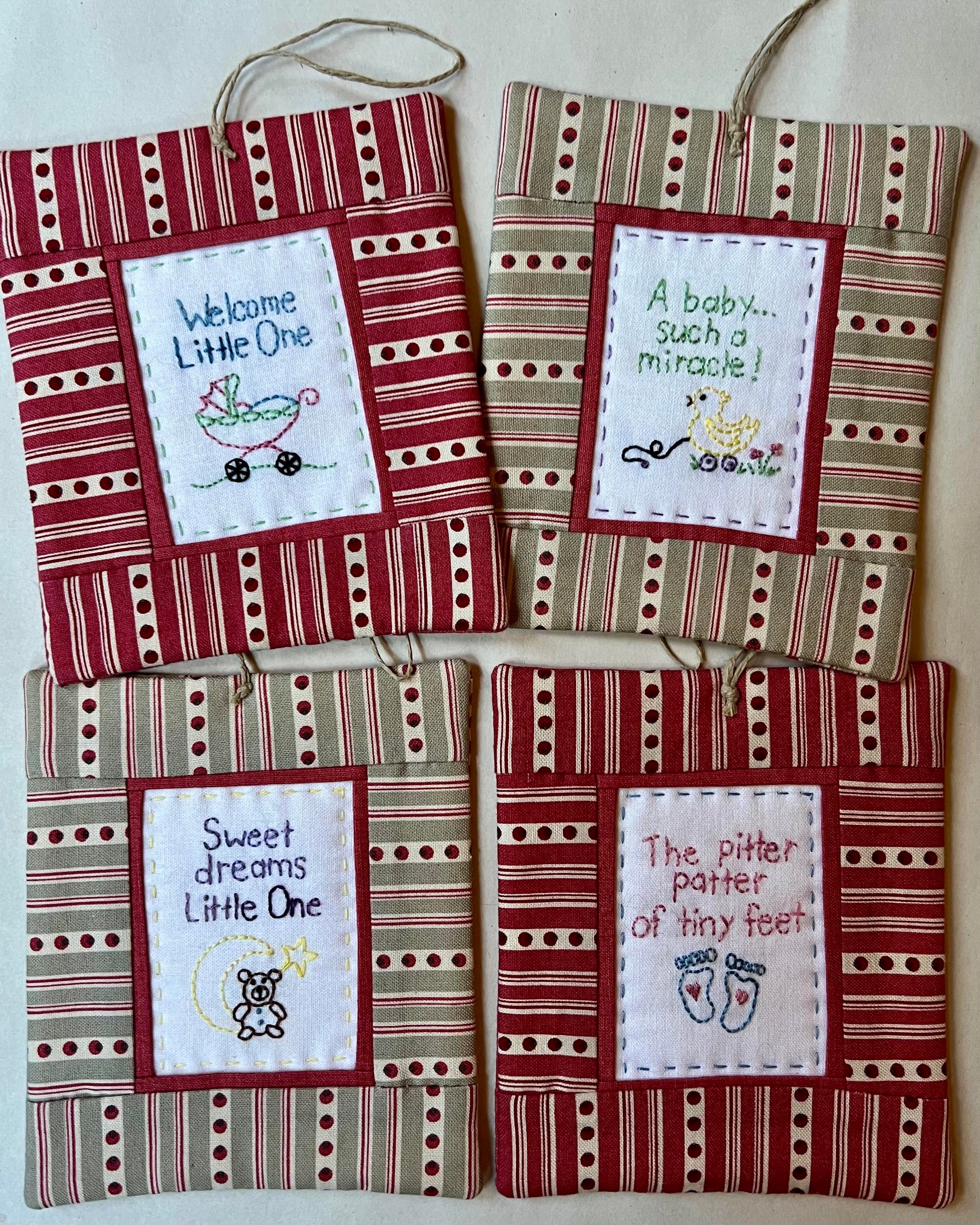 Four little ornaments to welcome the tiny, new arrival, a treasured keepsake for baby.