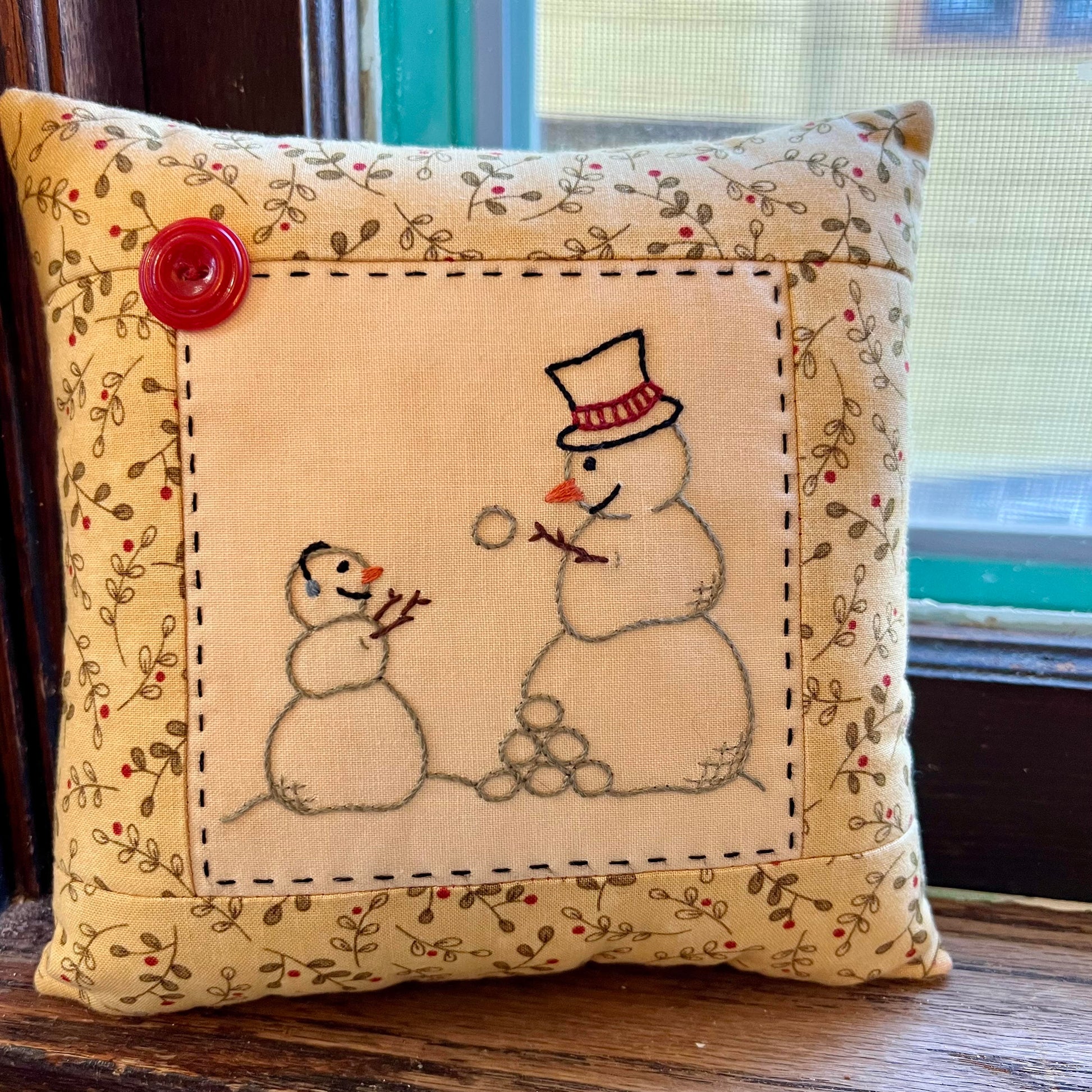 Look out your window, and you'll see some busy snowmen! Instructions tell you how to make a sampler or how to turn your favorite scene into a little pillow.